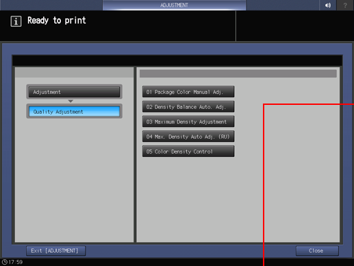 Press Quality Adjustment and Density Balance Auto. Adj. in sequence.