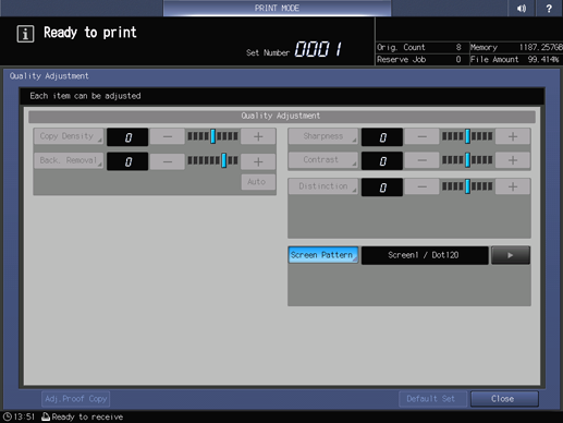 supplementary explanationPress Close on the Quality Adjustment screen.