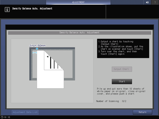 Press Return to return to the Density Balance Auto. Adjustment screen.