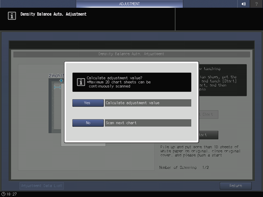 The second scan is carried out, and the density balance adjustment value is registered.