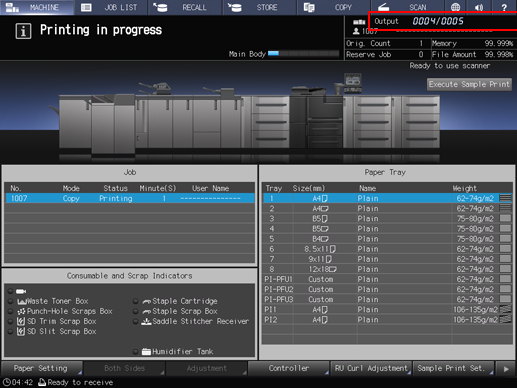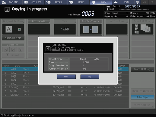 supplementary explanationWhen scanning the original for the job is started, a dialog is displayed on the COPY screen.
