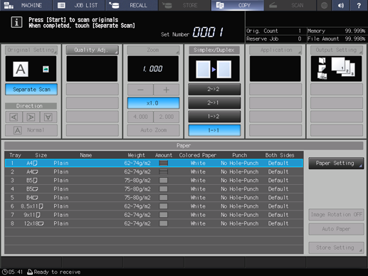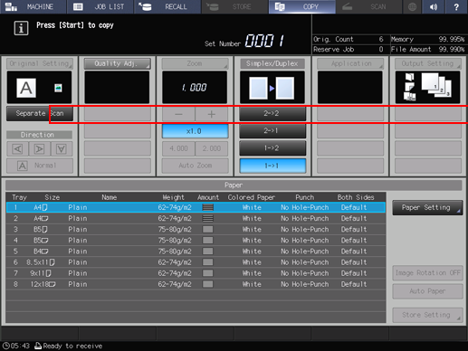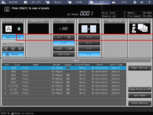 • preconditionSeparate Scan mode is necessarily used and operates automatically to make 2-sided copies using original glass.