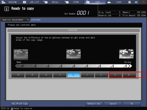 Select one from 1 to 4 to increase the contrast of copy image.