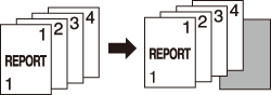 Back Cover + Blank | A blank sheet for a back cover will be inserted as the last sheet of copied set, regardless of the simplex/duplex printing mode of the original or copy. ![]() |