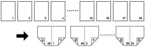Use this function to make a multiple page signature booklet printed on 2-sided paper, with original images automatically arranged in correct order.