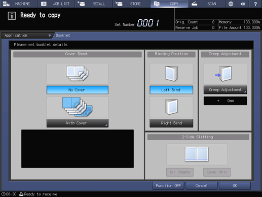 supplementary explanationTo cancel the Booklet function with the current setting saved, press Function OFF.