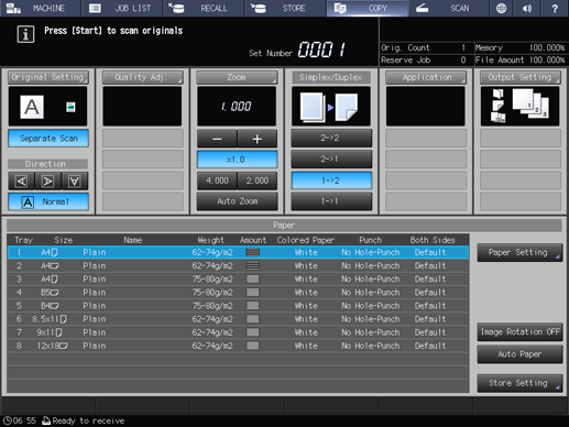 • supplementary explanationPrinting does not start without returning to the COPY screen. Be sure to display the COPY screen.