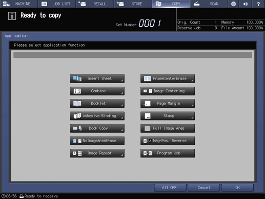 3. Press Application on the COPY screen.
