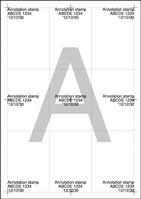 Annotation | This function allows you to recall a predefined combination of text, date/time to load the original, and annotation number of the original and to print them onto output copies at the designated location. | ||