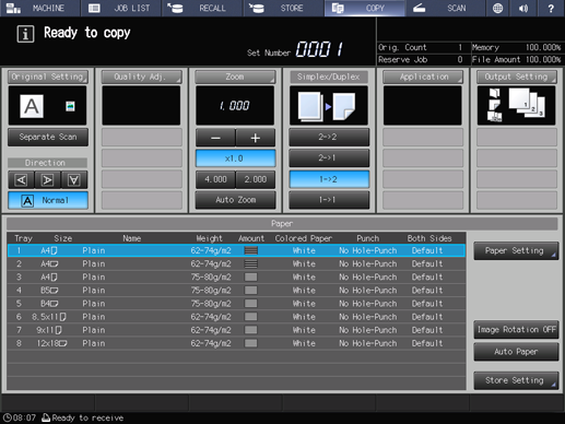Press the COPY tab to display the COPY screen.