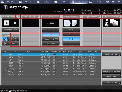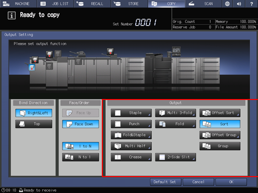 To display the Output Setting screen, press Output Setting on the COPY screen.