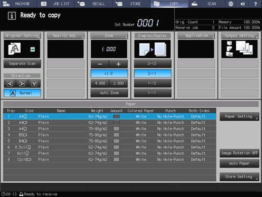 Press the COPY tab to display the COPY screen.