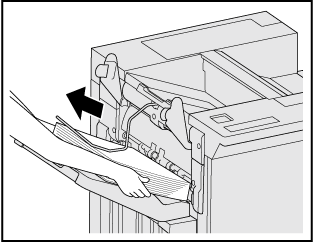 The primary (main) tray automatically goes up, and the message Now operating finisher is displayed on the screen.