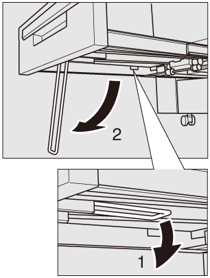 When using the bundle exit tray, be sure to fully pull out the tray. If the bundle exit tray is not pulled out fully, output is not accepted. When the bundle exit tray is pulled out fully, turn up the stand under the tray.