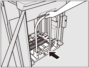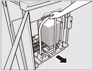 Be sure to withdraw the carriage straightforward. Do not change the direction forcibly while driving the carriage. The carriage is for the exclusive use of carrying paper. Do not drive it in any other use. Never put yourself in the large capacity stacker.