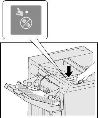 Press the Temporary Stop/Restart button of the finisher.