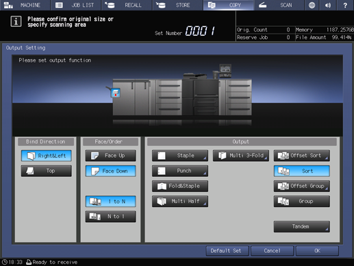 Press Output Setting on the Copy Screen of the machine to be This MFP.