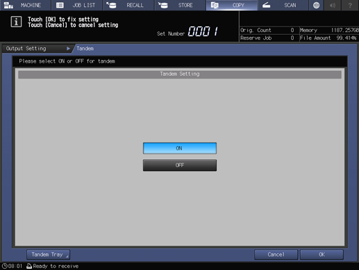 supplementary explanationOrdinary copying operation is still available on the Partner MFP during the tandem mode setting.