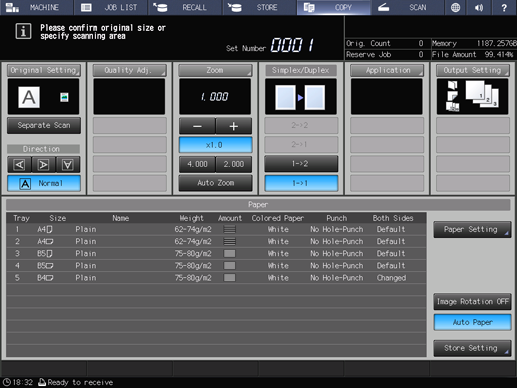 supplementary explanationConfirm that both machines are ready to copy with the Copy Screen displayed.