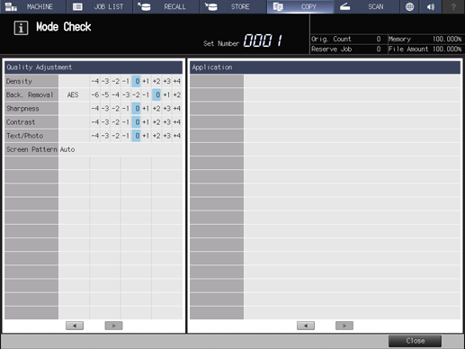 Before starting printing, display the Mode Check screen, and check the specified copy conditions. This is a convenient and cost effective way for making a large amount of copies.