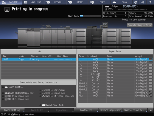 Repeat steps 1 and 2. Up to 99 jobs can be reserved including interrupt jobs. To confirm/control reserved jobs, display the Reserved Job screen by pressing the JOB LIST tab and Reserved Job.