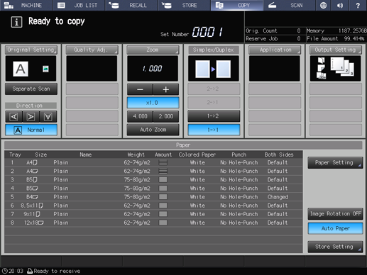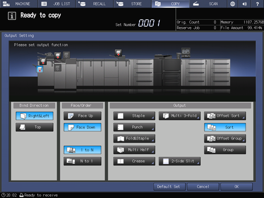 7. Press OK on the Output Setting screen to return to the COPY screen.