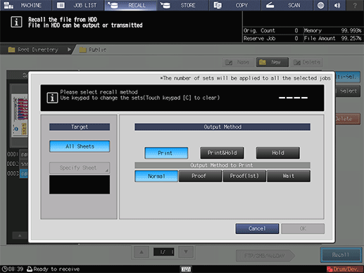 • supplementary explanationAlthough the number of sets specified for the job is displayed, you can change it for output purposes.