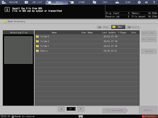 1. Press the RECALL tab to display the Root Directory screen on the RECALL screen.