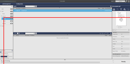 The specified HDD saved job is recalled and saved as a hold job. Click the Hold tab to check the result.