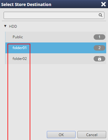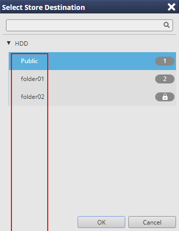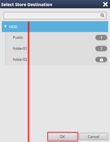 On the Select Store Destination screen, select a location to save a job in the HDD, then click OK.