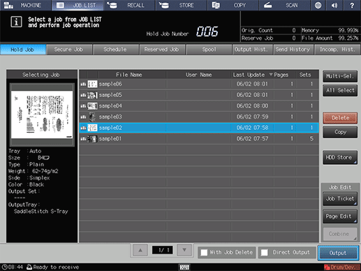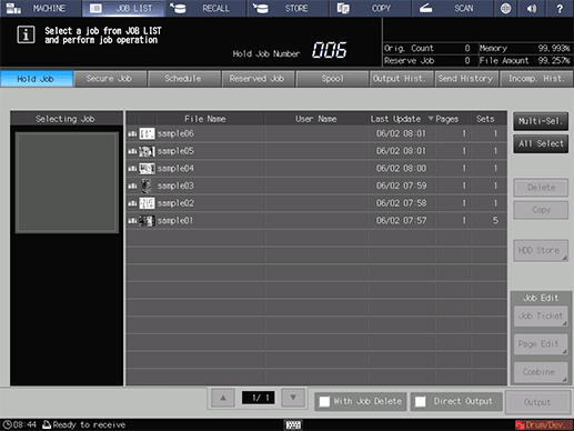 supplementary explanationFor details about the icons displayed in the list, refer to Hold Job Screen.