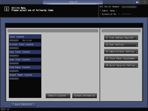 1. Press the Utility/Counter key.