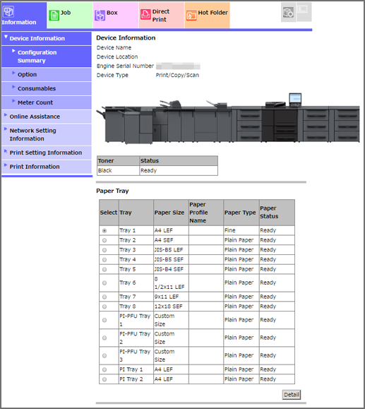• For details about Web Connection, refer to About Web Connection.