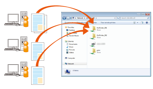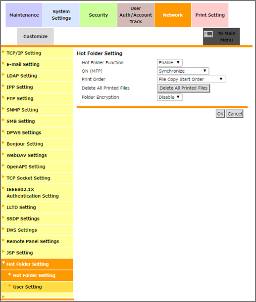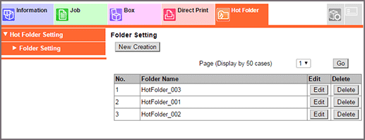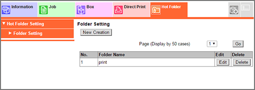 • To use the hot folder function, create a hot folder in Hot Folder Setting of this machine.