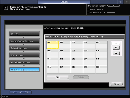 7. Select the unregistered user number, and press Edit.