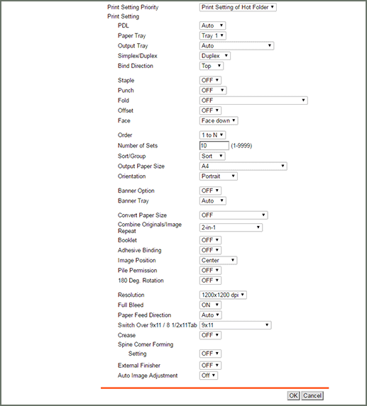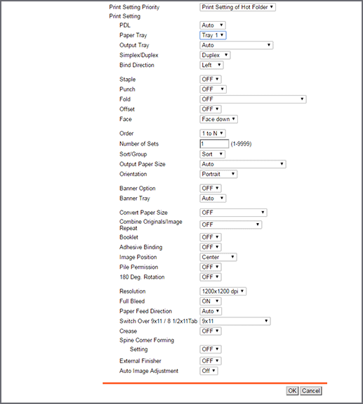 For details, refer to Registering Print Setting in Hot Folder.