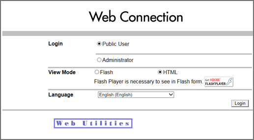 • To enter the administrator mode of Web Connection, you need to enter the administrator password. For details about the default administrator password, refer to Safety Information. If you cannot log in with the default password, contact the administrator.