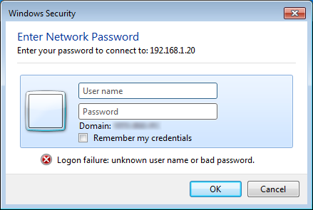 ii. When the Windows Security dialog appears, enter User Name and Password, and then click OK.