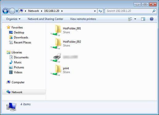 • When you access a Hot Folder after setting the folder or changing the settings, the error windows of the operation system may be displayed. Access a Hot Folder about 10 seconds after setting the folder or changing the settings.