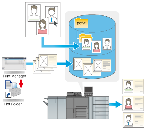 PDF/VT-2 variable printing is a method to manage only a part of a document as an external file and combine it with the document when making prints.