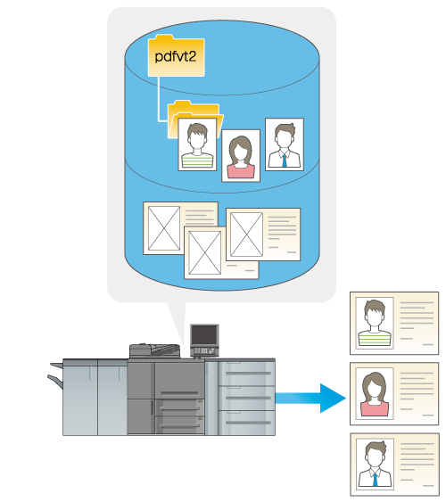 You can combine PDF/VT-2 document data with VDP resource data to output. Print Manager describes how to import data to a hold job.