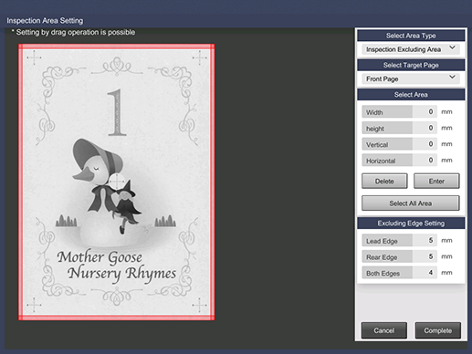 * If Select All Area is selected, all the target pages are specified as areas. Use this option when specifying the back side for 1-sided printing.