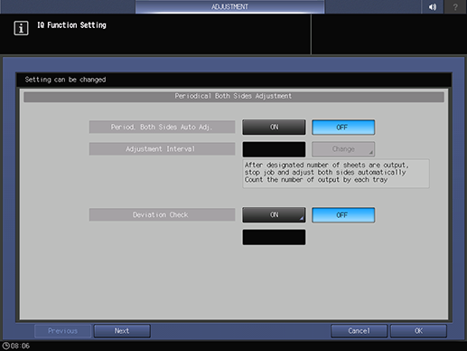 1. On the touch panel, press IQ Function Set. on the MACHINE screen.