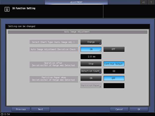 4. Select OFF in Automatic Reprint when Deviation/Out of Range was Detected.