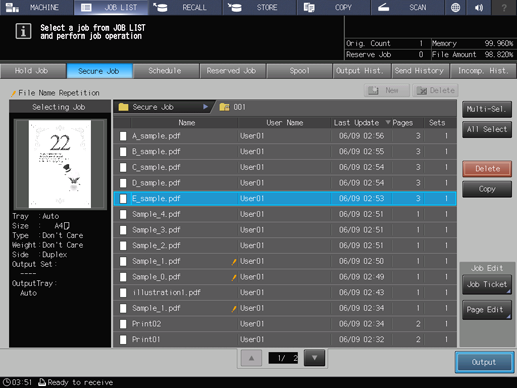 supplementary explanationPress Multi-Sel. first to select multiple jobs.