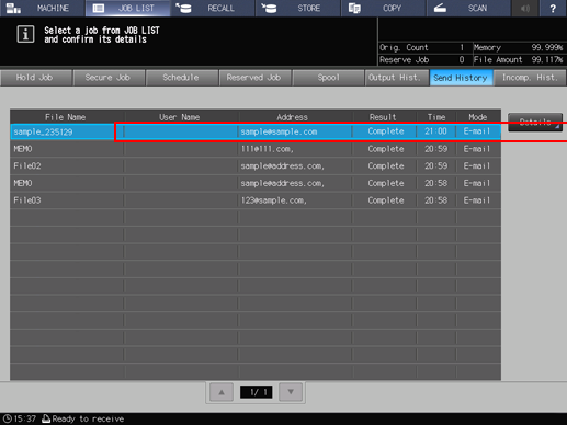 Check the status of jobs sent in the list of the screen.