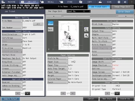 • supplementary explanationFor the combined image page data, such as 2 in 1, each combined image is displayed under the Image In Sheet on the lower left of the screen. The image selected here is displayed.