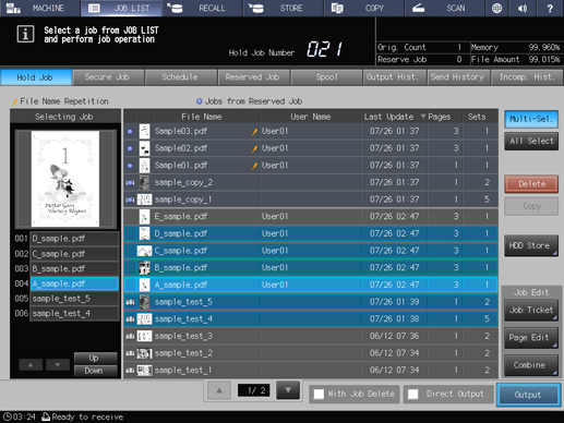 supplementary explanationPress Multi-Sel. first to select multiple jobs.