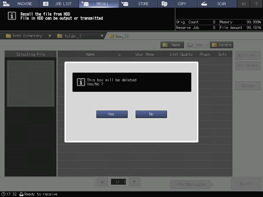 • supplementary explanationYou cannot delete a user box if it contains a job.