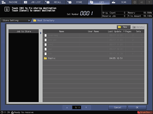 supplementary explanationPressing HDD Store displays the Root Directory screen. Select a destination, and then press OK.